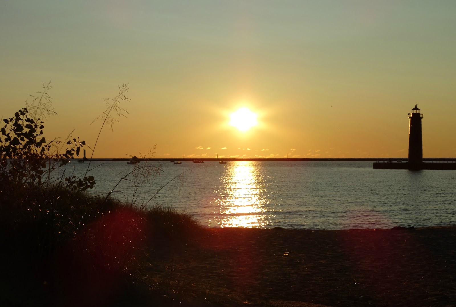 We continued our trek up Lake Michigan and found a surprisingly good BBQ restaurant and sadly, we came across a horrific wreck that we later learned claimed the life of a 26 year old man. It was a beautiful day outside and the progressing evening was only proving to be a great day to travel. We drove over to the South Haven South Pierhead Light but continued onward as I wasn't as impressed with the size of the lighthouse. We opted out of Holland Harbor House Lighthouse after reading the catwalk was inaccessible due to renovations so on we cruised to the Grand Haven Lighthouse in hopes of catching the sunset in Muskegon.